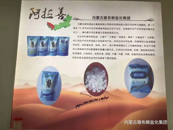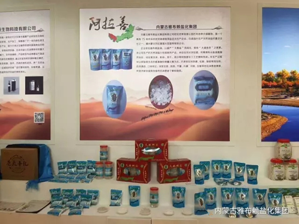 在此次博覽會(huì)上雅布賴鹽化集團(tuán)有限公司展出了加碘精制鹽、腌制鹽、大青鹽、晶粒鹽、罐裝鹽根、禮品盒六種鹽產(chǎn)品。