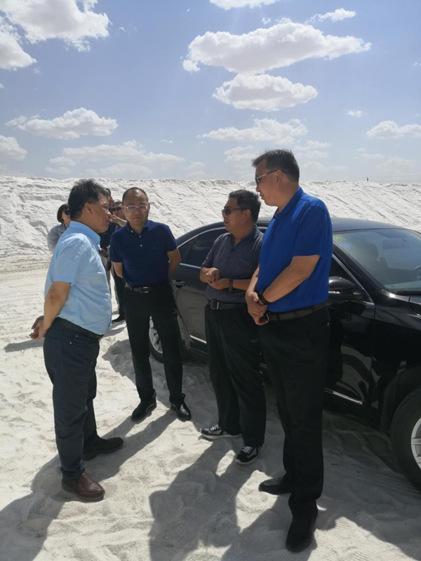 7月4日下午,甘肅省鹽務(wù)管理局局長謝建國、中鹽甘肅省鹽業(yè)集團(tuán)有限責(zé)任公司執(zhí)行董事、總經(jīng)理、黨委副書記何中信、中鹽甘肅省鹽業(yè)集團(tuán)有限責(zé)任公司河西分公司黨委書記楊玉斌等一行13人來公司調(diào)研。集團(tuán)公司黨委書記董事長孫剛德、黨委副書記總經(jīng)理李奎錦陪同前往鹽湖和精鹽分廠小包裝生產(chǎn)線進(jìn)行實(shí)地考察,之后在公司三樓會議室進(jìn)行了座談。