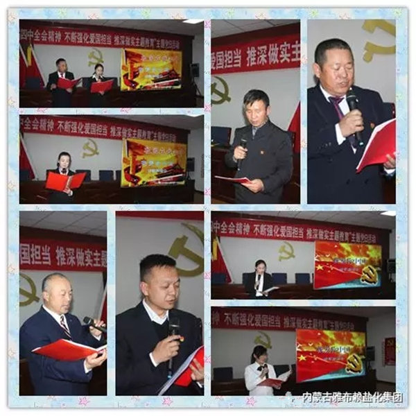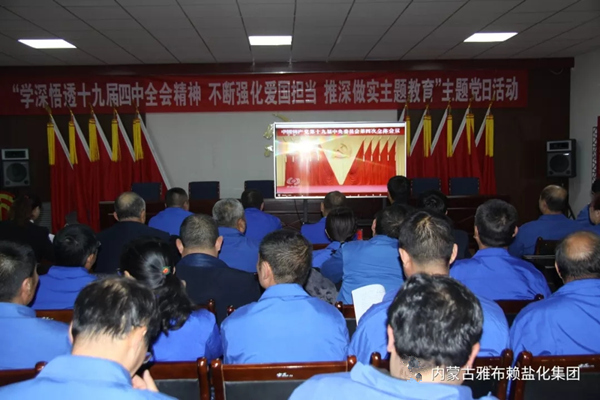 為認真學(xué)習(xí)宣傳貫徹黨的十九屆四中全會精神,同時扎實落實《新時代愛國主義教育實施綱要》和旗委《關(guān)于在“不忘初心、牢記使命”主題教育中加強愛國主義教育,弘揚愛國主義精神的通知》,切實激發(fā)集團公司廣大黨員干部和職工群眾的愛國熱情,凝聚奮進新時代和推動企業(yè)高質(zhì)量發(fā)展的磅礴力量,有力推動集團公司“不忘初心,牢記使命”主題教育走深走實,11月25日晚,雅鹽化集團公司7個黨支部聯(lián)合開展“學(xué)深悟透十九屆四中全會精神不斷強化愛國擔(dān)當(dāng) 推深做實主題教育”主題黨日活動。