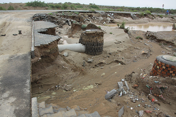 鹽湖采區(qū)遭受污染 供銷分公司庫房房頂毀壞 精鹽分廠粉鹽品遭受雨水浸泡 鎮(zhèn)區(qū)馬路被破壞 居民院落外墻被泡塌 泄洪口被沖毀 集團(tuán)公司鹽湖受損最嚴(yán)重。山洪自西向東灌入正在生產(chǎn)的鹽湖采區(qū),不僅結(jié)晶池遭到污染,挖掘機(jī)歸攏的鹽品也全部溶化。已經(jīng)生產(chǎn)出的半成品鹽坨遭受暴雨清洗,僅雨水溶化的鹽品近2千噸。精鹽分廠剛剛生產(chǎn)的粉洗鹽,雖及時(shí)苫蓋,也沒有躲過雨水浸泡,600噸成品報(bào)廢。據(jù)統(tǒng)計(jì),鹽湖直接經(jīng)濟(jì)損失達(dá)500多萬元。 因暴雨侵襲,采鹽分廠部分院墻倒塌,供銷分公司3間供應(yīng)庫房房頂毀壞,機(jī)運(yùn)分廠和公司辦公樓大面積漏水,供熱分公司2000米暖氣管溝遭到雨水漫灌,30處檢查井損毀,幾乎每個(gè)單位都受到重創(chuàng)。 由于公司部分職工居住的平房還是土木結(jié)構(gòu),山洪來襲,泄洪口排水不及,致使3家居民院墻被沖塌,1家居民小房子外墻被泡塌,另有3棟樓房地下室被山洪漫灌。100多戶居民房屋漏水嚴(yán)重。危急時(shí)刻,政府相關(guān)部門及時(shí)組織疏散受災(zāi)群眾,避免了人員傷亡。 山洪來勢兇猛,小鎮(zhèn)唯一的防洪渠跨馬路部分被沖毀,鎮(zhèn)區(qū)馬路多處遭到破壞。